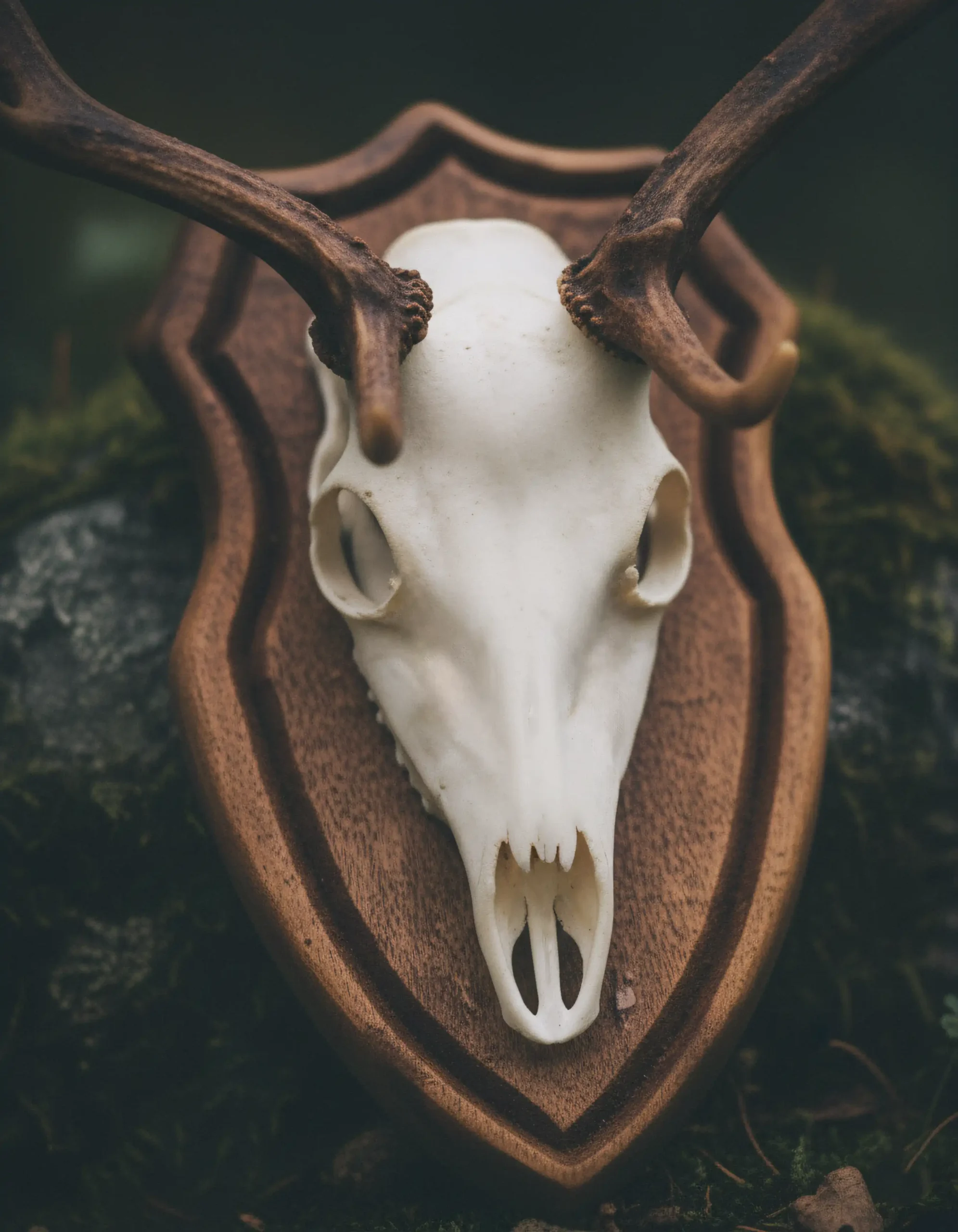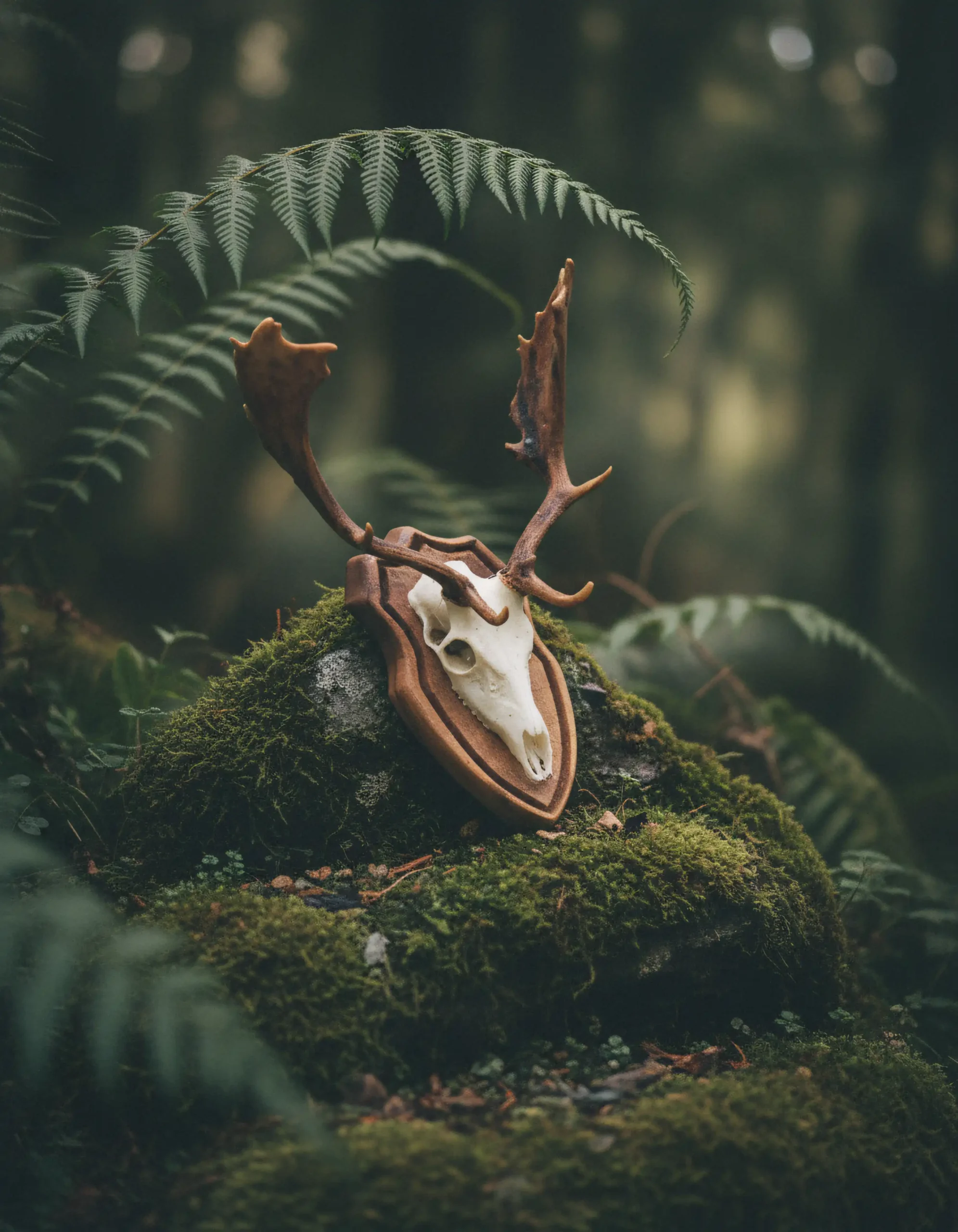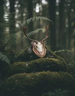 Ansteck-Pin „Damhirsch-Trophäe mit Holzschild“ – edel, naturverbunden, handgefertigt