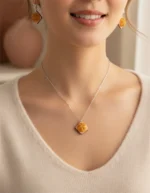 Die Halskette und Ohrhaken bestehen aus 925er Sterling Silber, was für angenehmen Tragekomfort und langlebige Qualität sorgt.