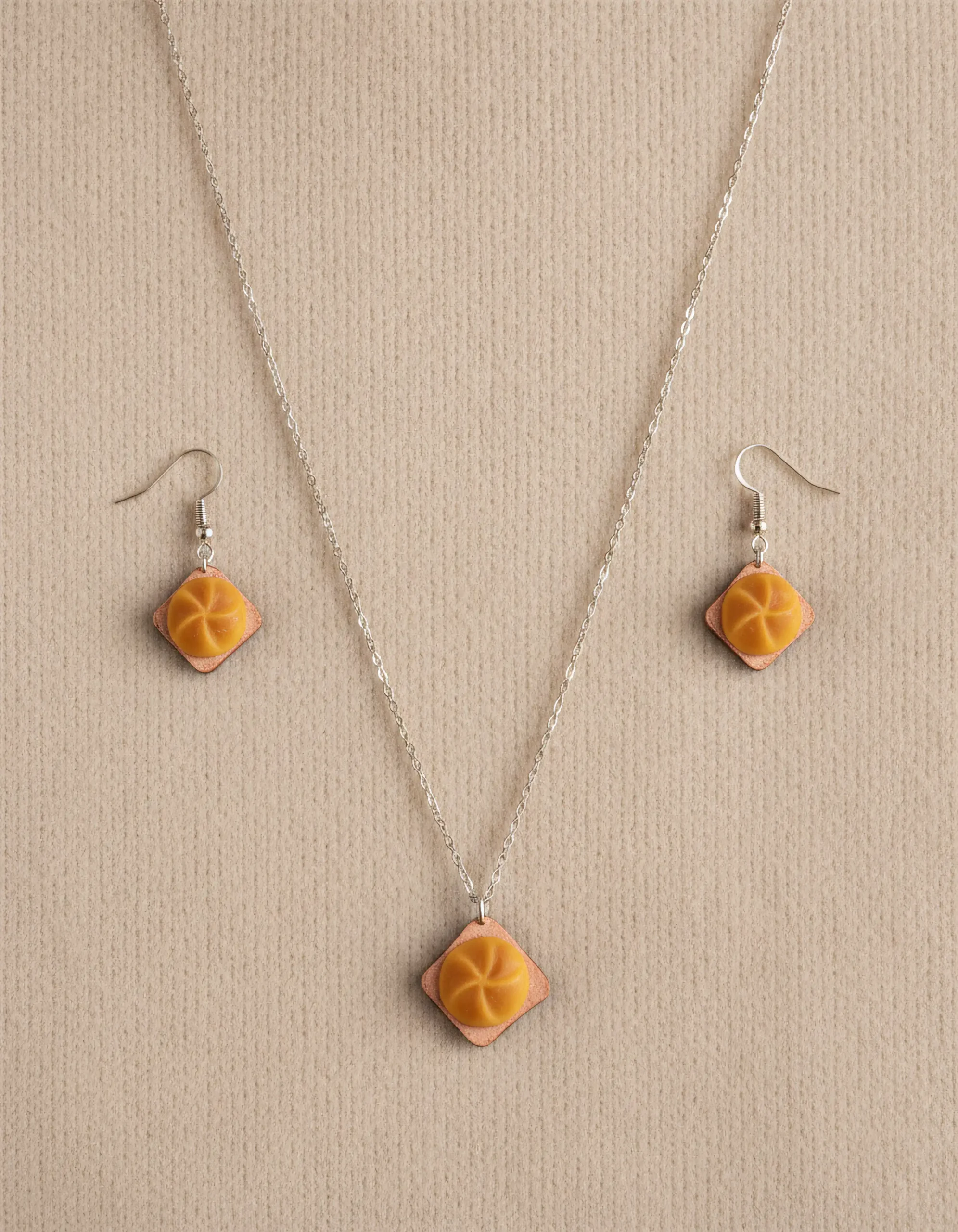 Ein Stück österreichische Esskultur zum Anziehen: Unser „Leberkässemmel“-Schmuckset bringt Humor und Heimatgefühl an Hals und Ohr.