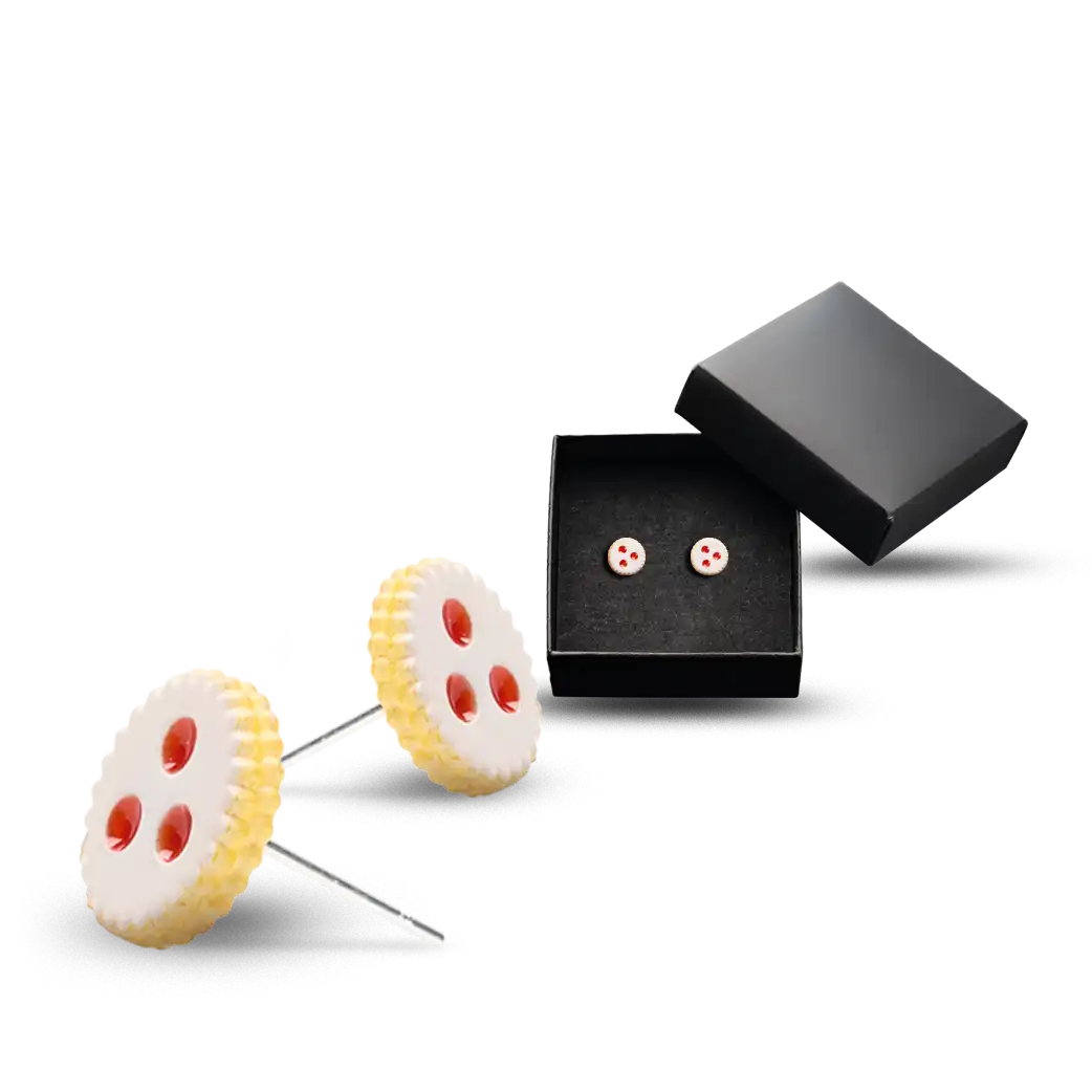 Diese handgefertigten und handbemalten Ohrstecker zeigen die beliebten Linzer Augen im Miniaturformat. Mit ihren liebevoll gestalteten Details fangen sie den Charme des klassischen Gebäcks perfekt ein – ganz ohne Zucker, dafür als dauerhaft tragbares Accessoire.