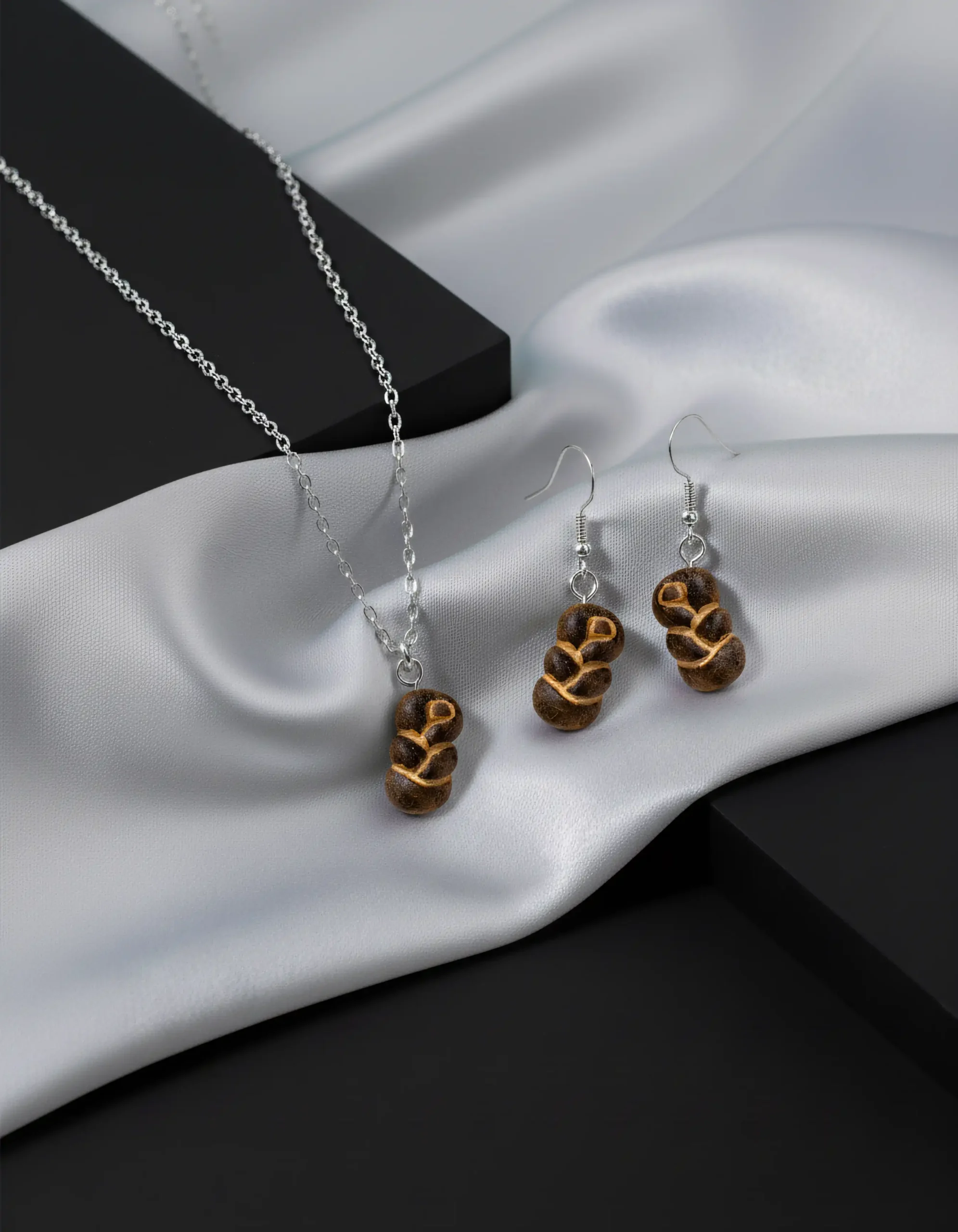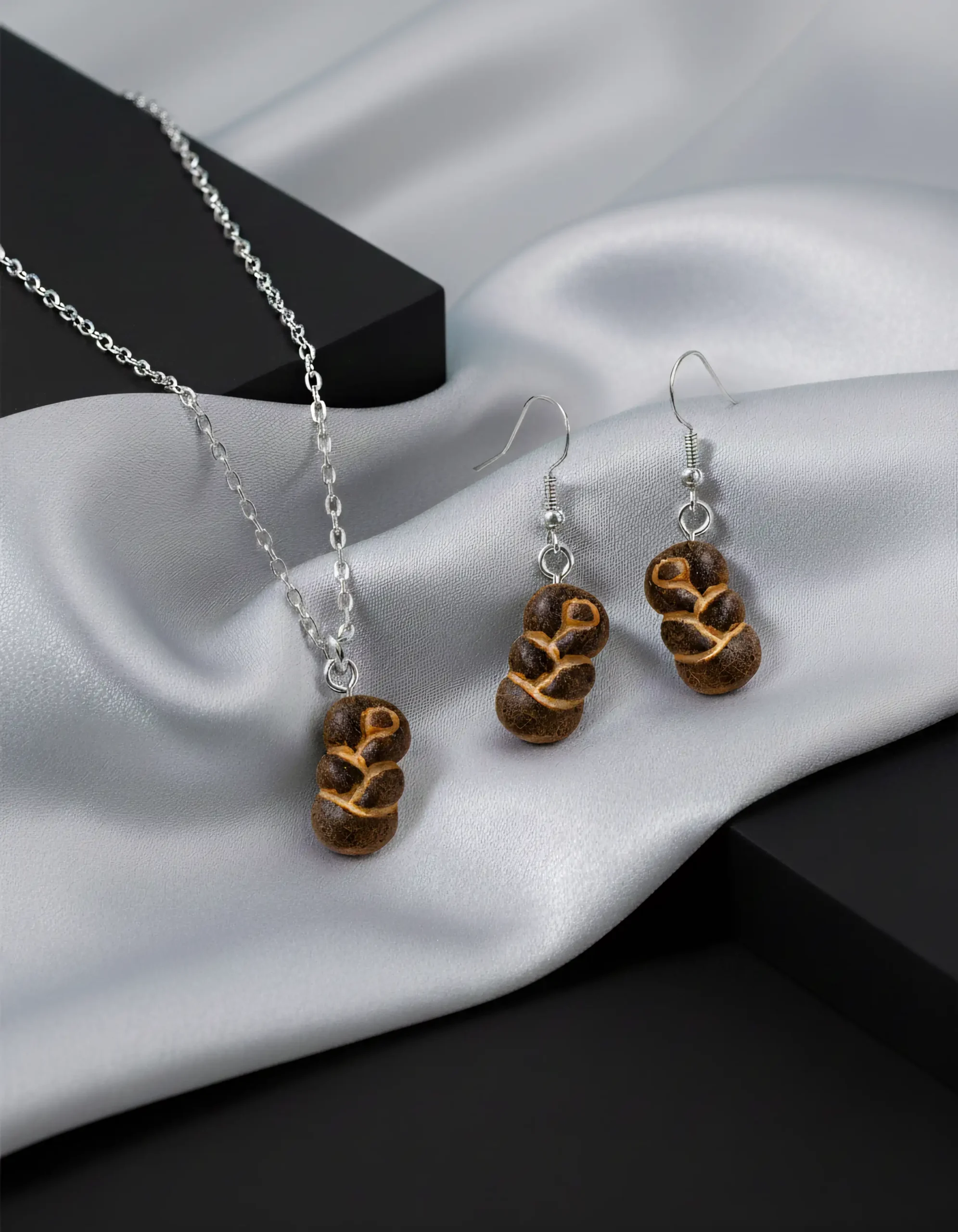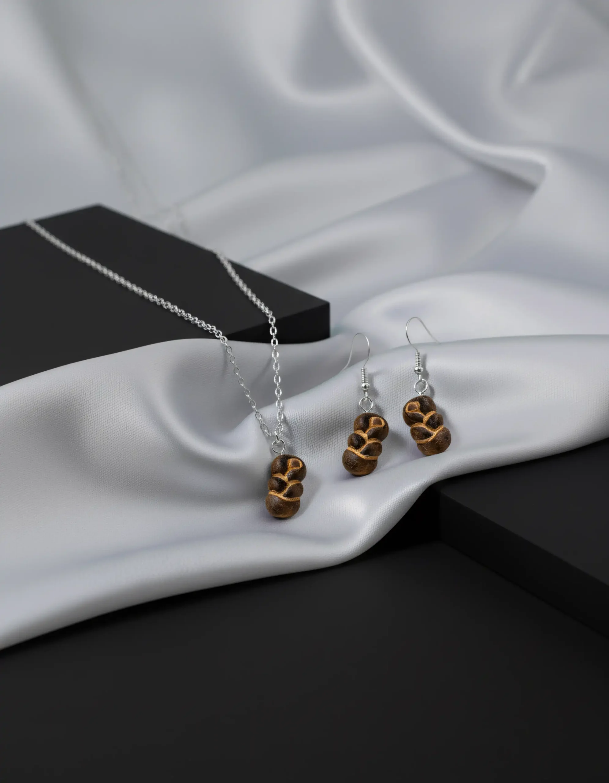 Ein Stück österreichische Backkultur, das man nicht essen, aber tragen kann: Unser „Mohnflesserl“-Schmuckset bringt ein Augenzwinkern und ganz viel Charme an Hals und Ohr.