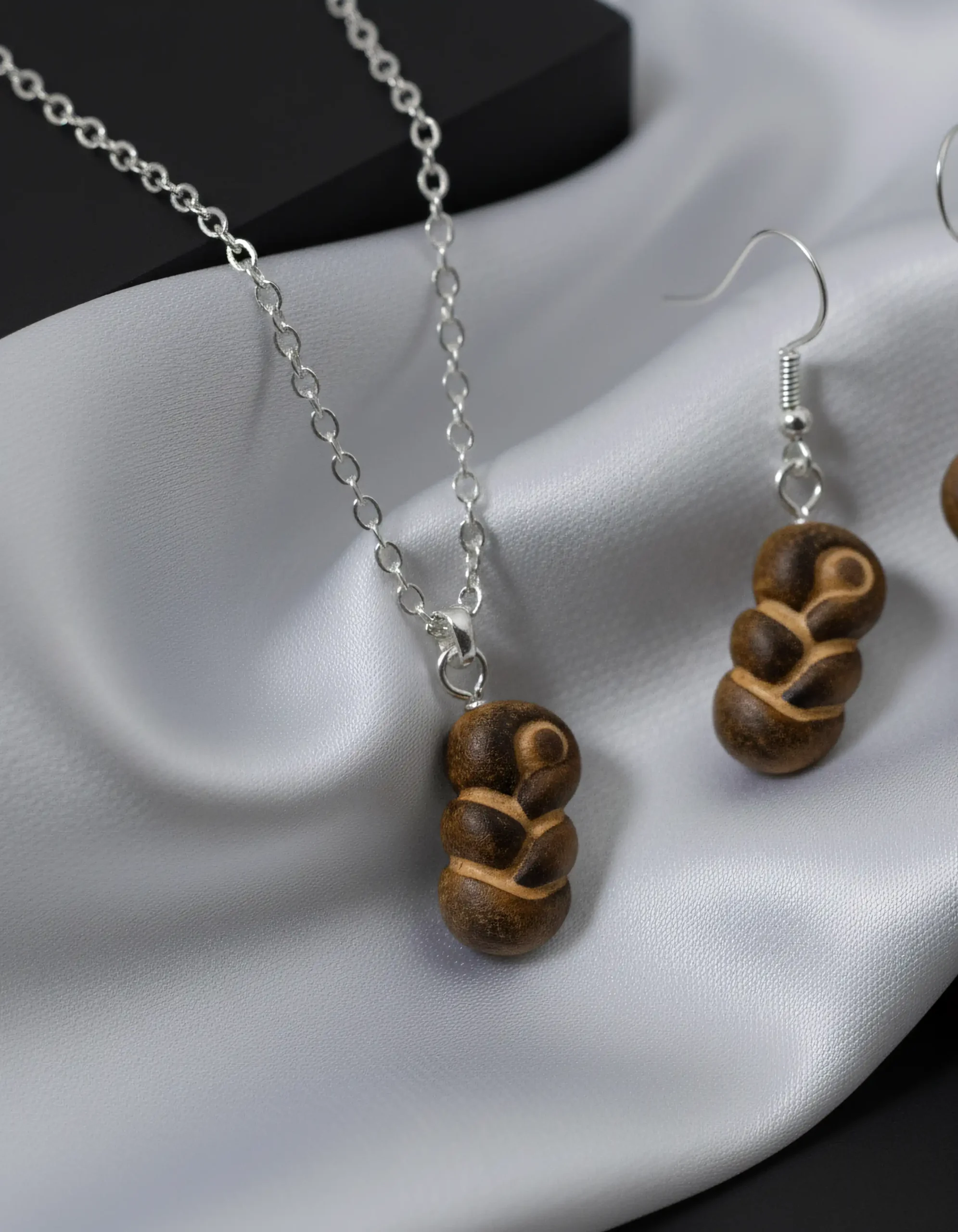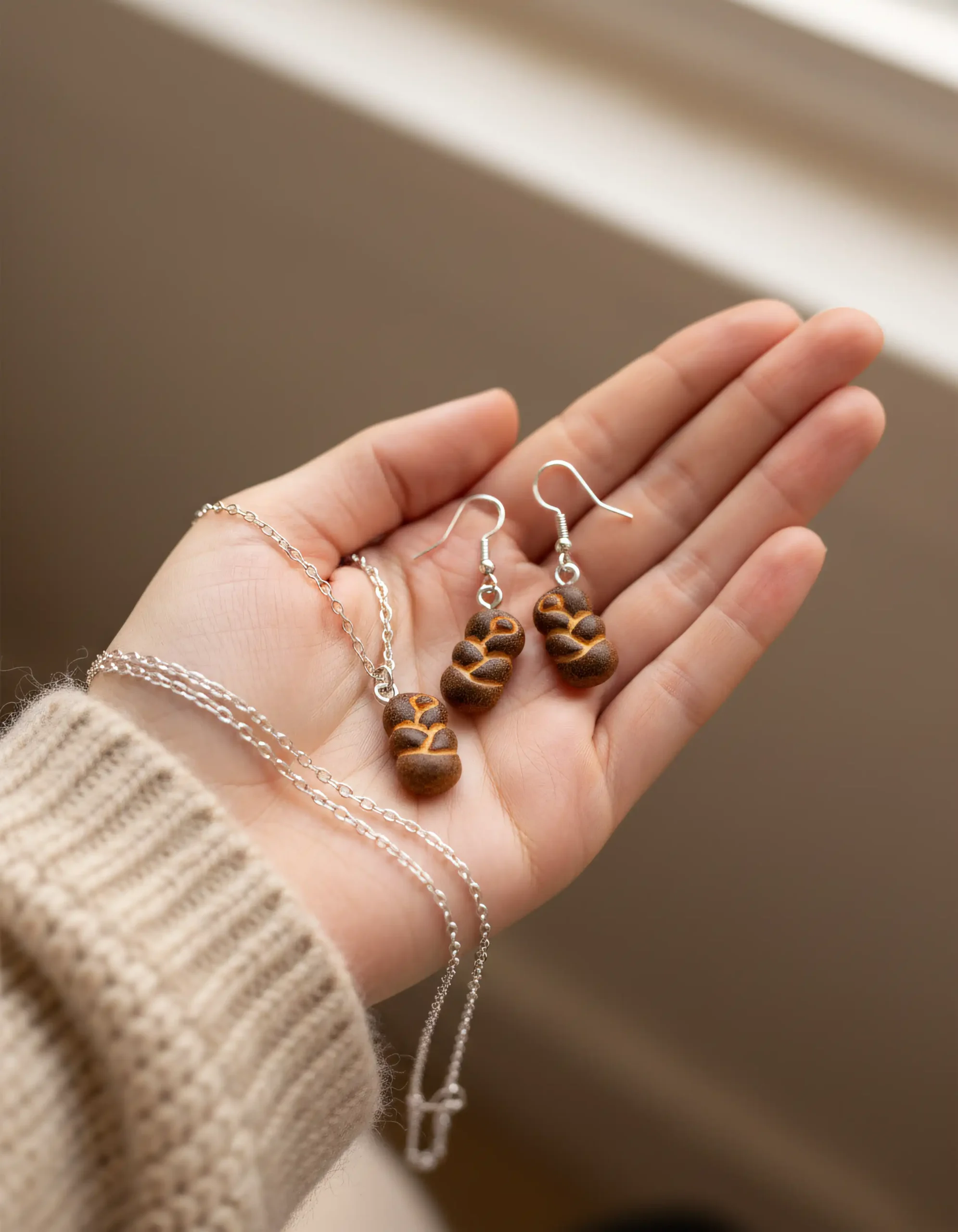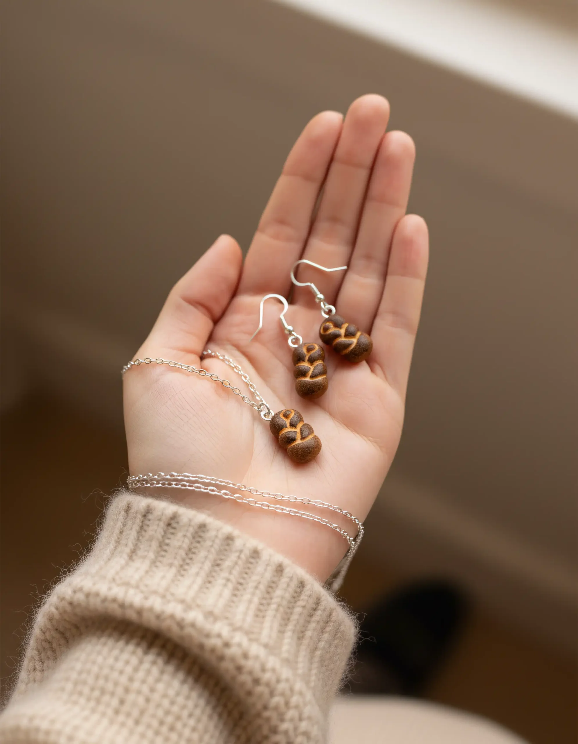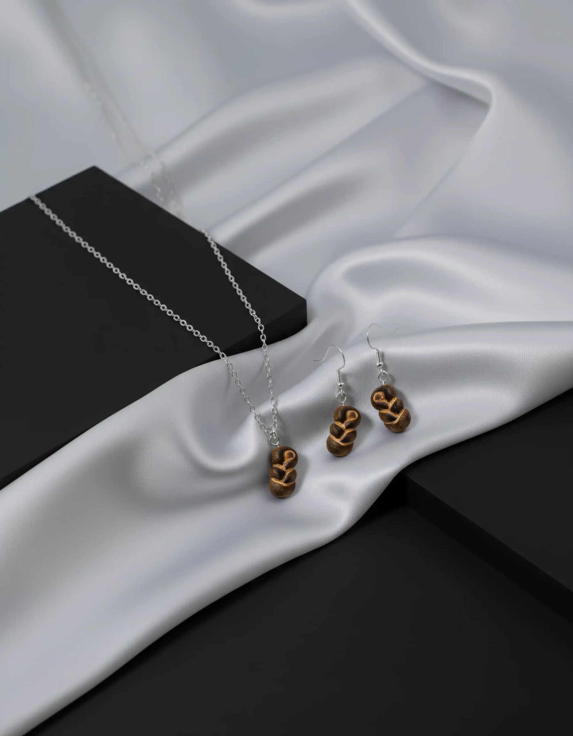 Ein Stück österreichische Backkultur, das man nicht essen, aber tragen kann: Unser „Mohnflesserl“-Schmuckset bringt ein Augenzwinkern und ganz viel Charme an Hals und Ohr.
