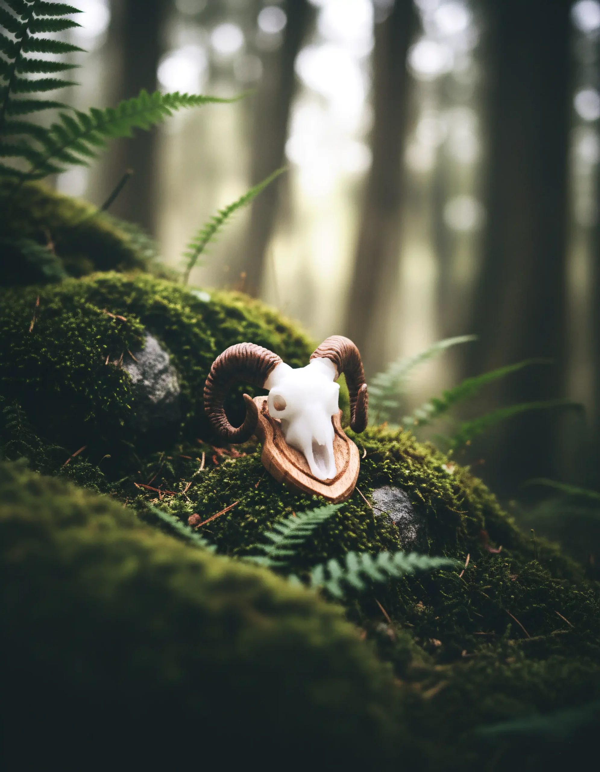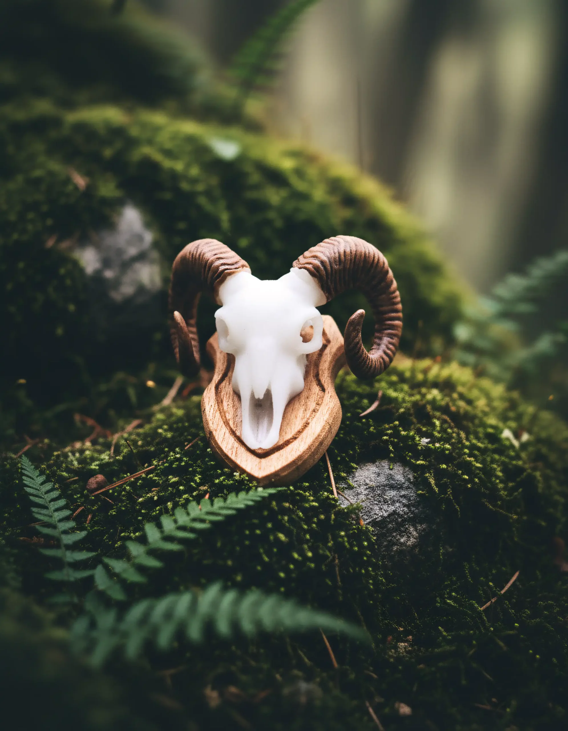 Ansteck-Pin „Mufflon-Trophäe mit Holzschild“ – kraftvoll, traditionell, handgefertigt