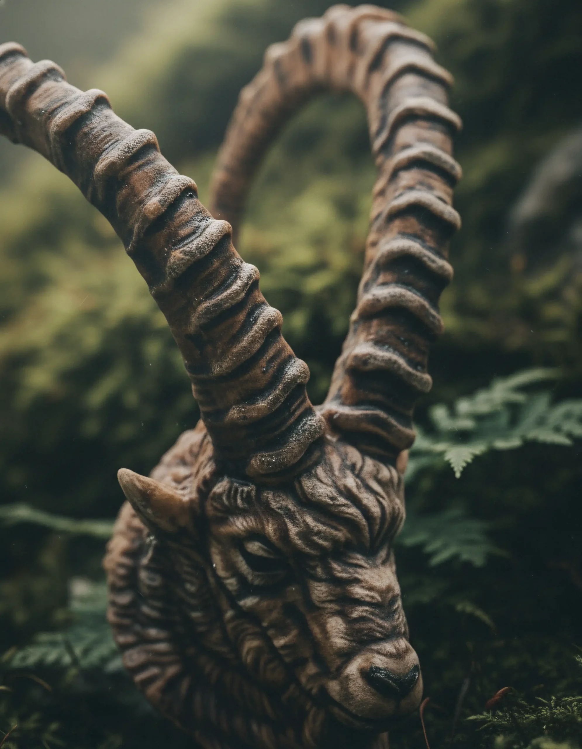 Dieser handgefertigte Ansteck-Pin zeigt das charakteristische Haupt eines Steinbocks – mit mächtigen, gebogenen Hörnern und markanter Form. Das kraftvolle Motiv ist sorgfältig modelliert und detailreich von Hand bemalt, wodurch jedes Stück seine ganz eigene Ausstrahlung erhält.